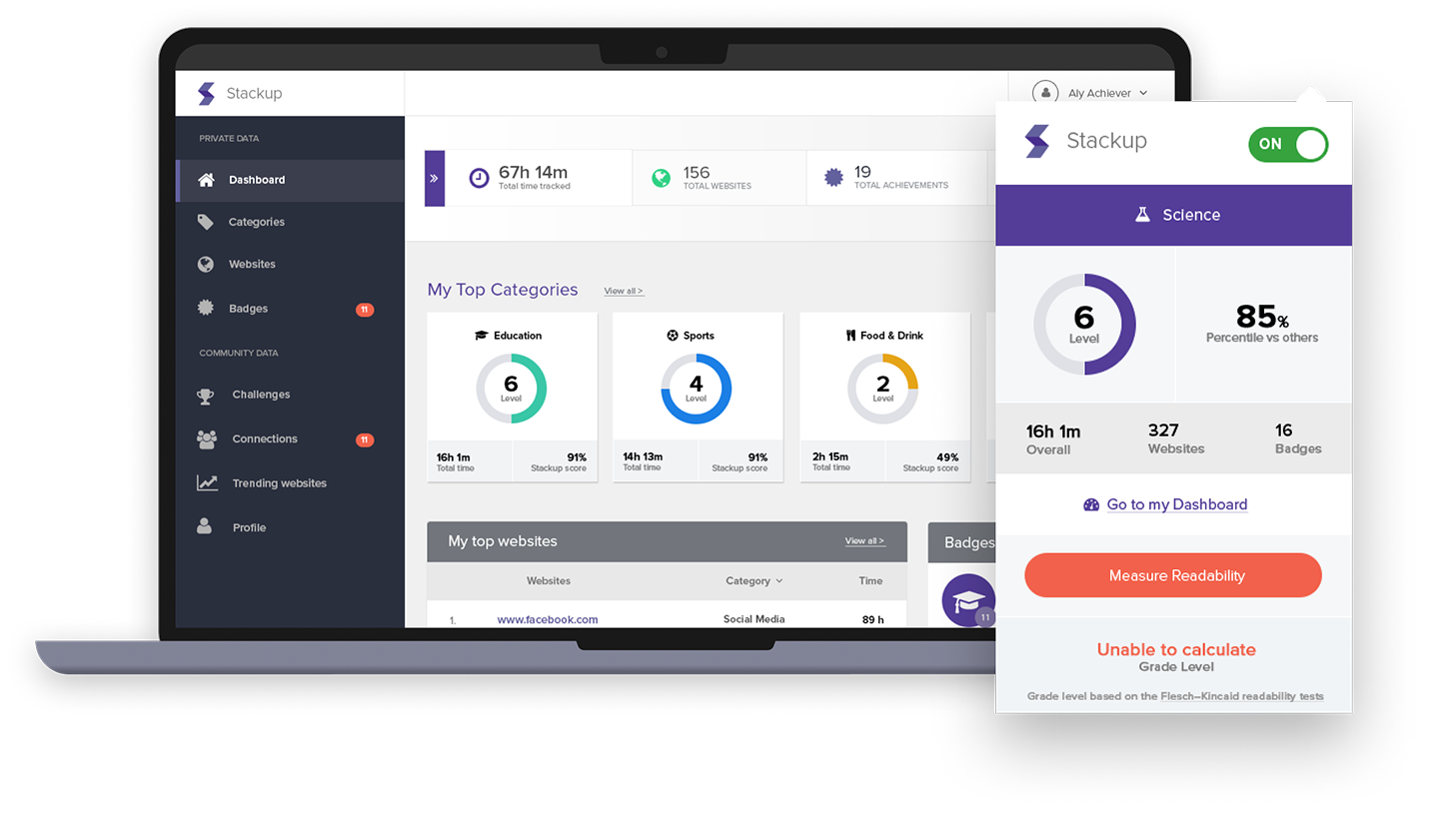 I led the end-to-end design of Stackup, a K–12 reading analytics platform that measured and encouraged online reading.