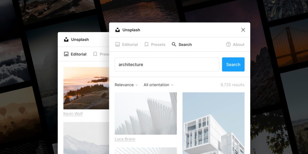Insert beautiful images from Unsplash into your designs. The Unsplash License allows images to be used freely for both commercial and personal projects. Click the “Try it out” button to experiment in a Figma file.