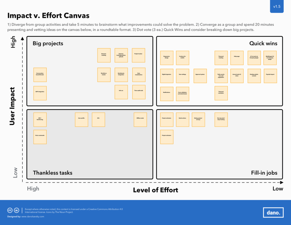 - Impact versus effort mapping